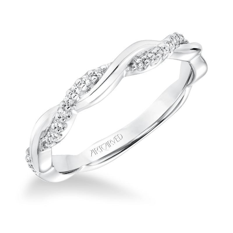 Artcarved Bridal Mounted with Side Stones Contemporary Stackable Fashion Anniversary Band 14K White Gold - 33-V9205W-L.00