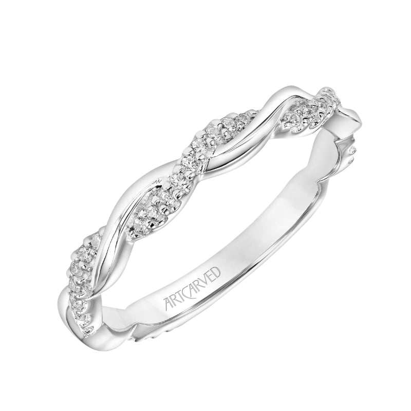 Artcarved Bridal Mounted with Side Stones Contemporary Twist Diamond Wedding Band Embrey 18K White Gold - 31-V898W-L.01