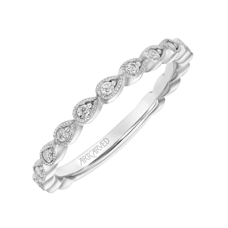 Stackable Pear Motif Petite Diamond And Milgrain Band
