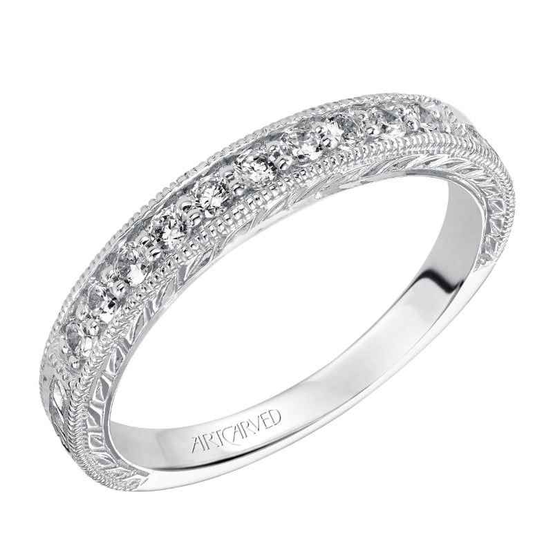 Artcarved Bridal Mounted with Side Stones Vintage Diamond Anniversary Band 14K White Gold - 33-V9127W-L.00