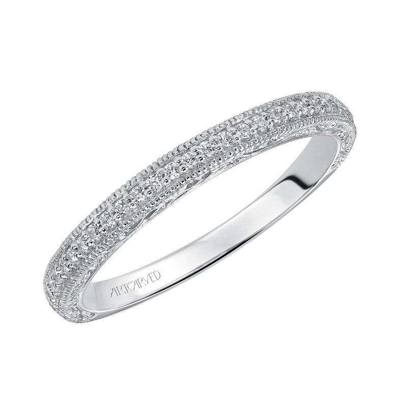 Artcarved Bridal Mounted with Side Stones Vintage Diamond Wedding Band Amaya 14K White Gold - 31-V435W-L.00