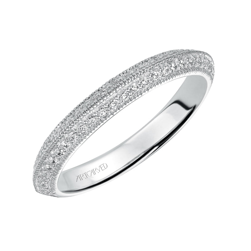 Artcarved Bridal Mounted with Side Stones Vintage Diamond Wedding Band Brenda 14K White Gold - 31-V423W-L.00