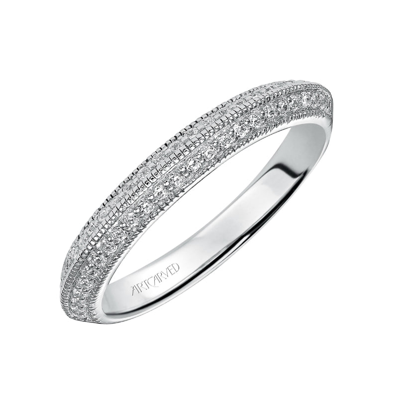 Artcarved Bridal Mounted with Side Stones Vintage Diamond Wedding Band Bridget 14K White Gold - 31-V424W-L.00