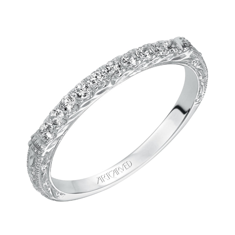 Artcarved Bridal Mounted with Side Stones Vintage Diamond Wedding Band Charmaine 14K White Gold - 31-V493W-L.00