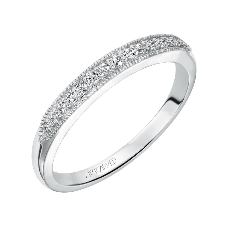 Artcarved Bridal Mounted with Side Stones Vintage Diamond Wedding Band Francesca 14K White Gold - 31-V480W-L.00
