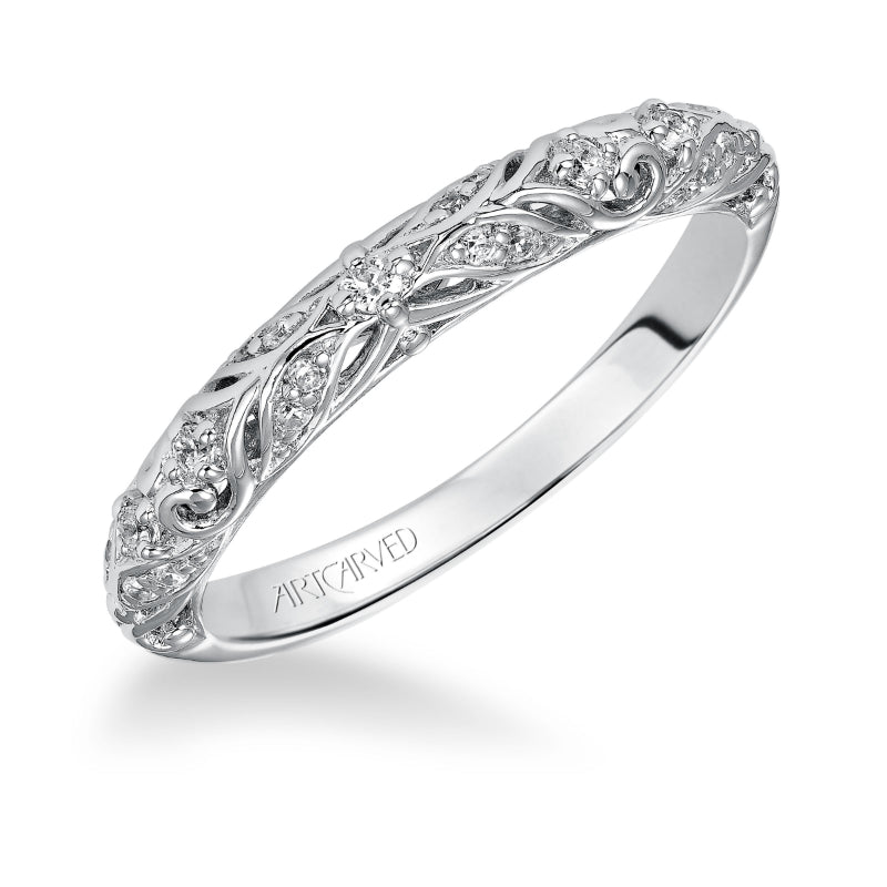Artcarved Bridal Mounted with Side Stones Vintage Diamond Wedding Band Glenda 14K White Gold - 31-V529W-L.00
