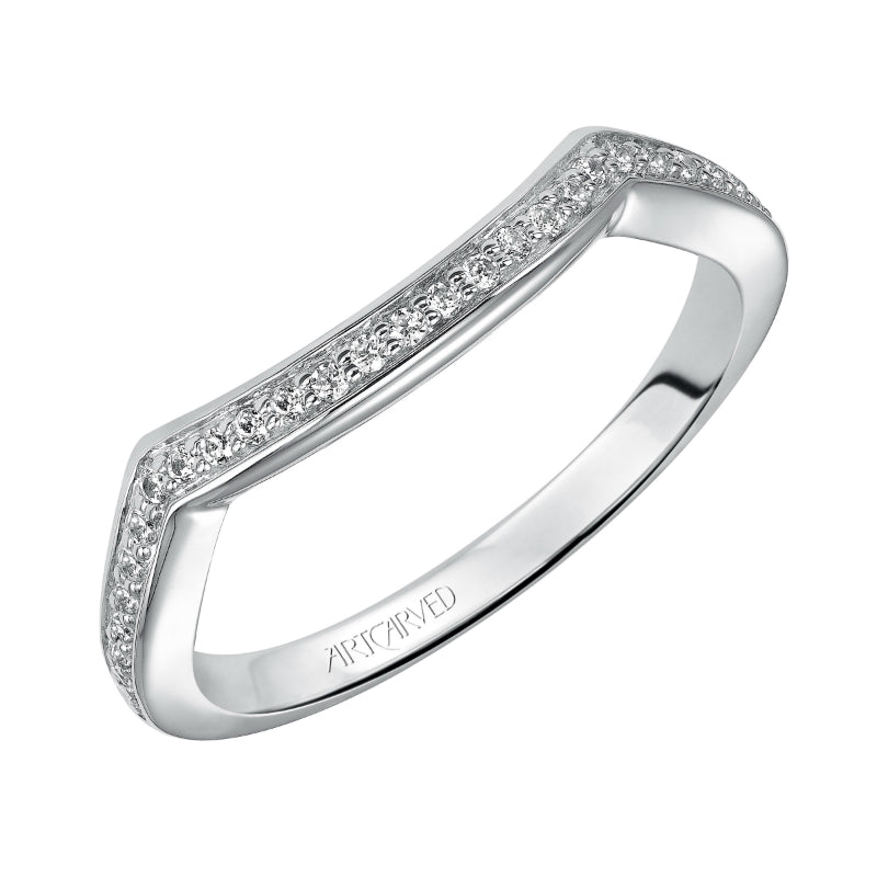 Artcarved Bridal Mounted with Side Stones Vintage Diamond Wedding Band Lucia 14K White Gold - 31-V477W-L.00