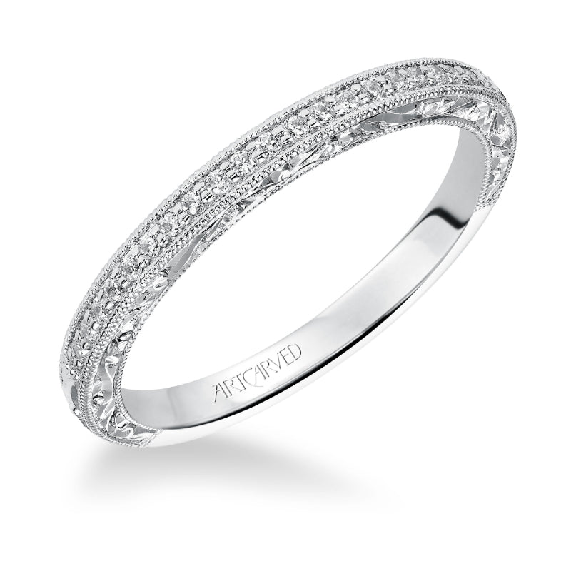 Artcarved Bridal Mounted with Side Stones Vintage Engraved Diamond Wedding Band Julie 14K White Gold - 31-V513W-L.00