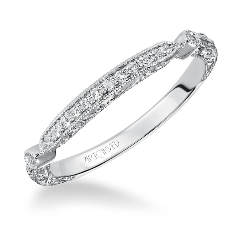 Artcarved Bridal Mounted with Side Stones Vintage Engraved Halo Diamond Wedding Band Crystal 14K White Gold - 31-V518W-L.00