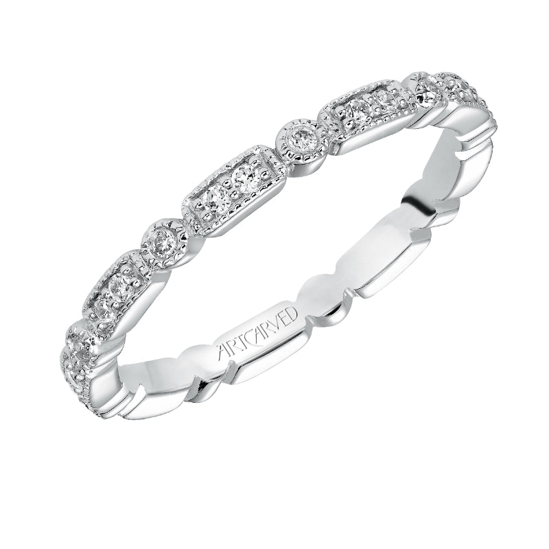 Artcarved Bridal Mounted with Side Stones Vintage Eternity Diamond Anniversary Band 14K White Gold - 33-V95A4W65-L.00