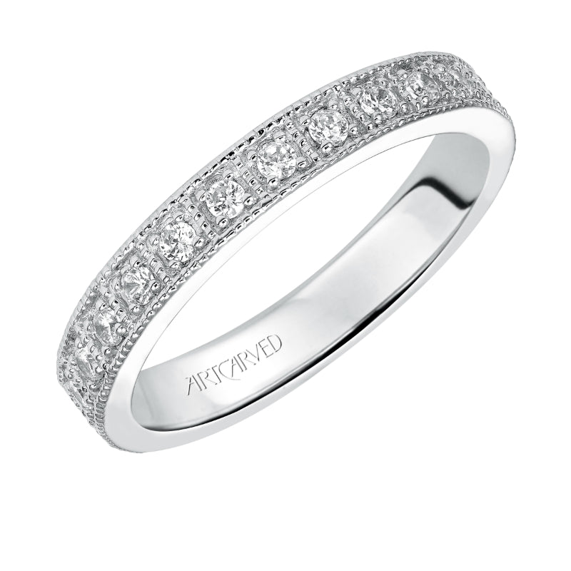 Artcarved Bridal Mounted with Side Stones Vintage Eternity Diamond Anniversary Band 14K White Gold - 33-V97C4W65-L.00