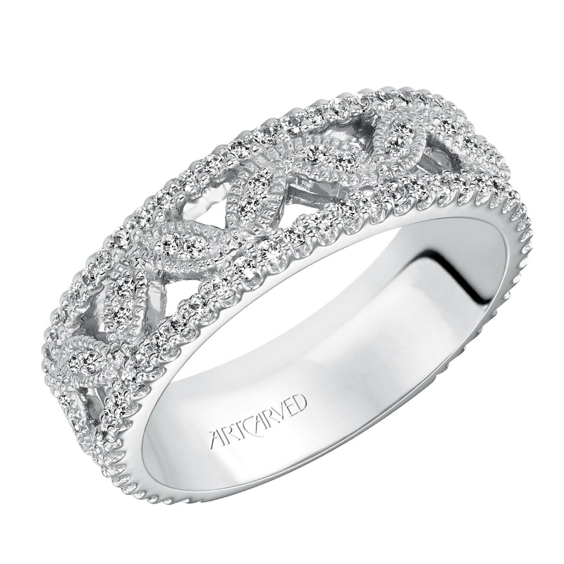 Artcarved Bridal Mounted with Side Stones Vintage Fashion Diamond Anniversary Band 14K White Gold - 33-V9108W-L.00