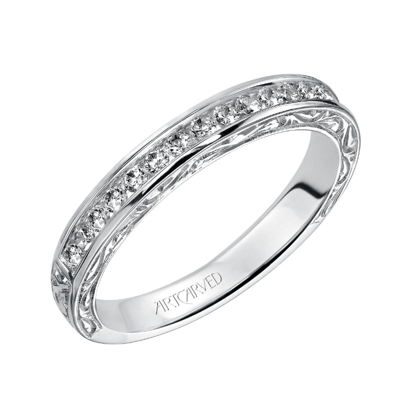 Artcarved Bridal Mounted with Side Stones Vintage Fashion Diamond Anniversary Band 14K White Gold - 33-V9119W-L.00