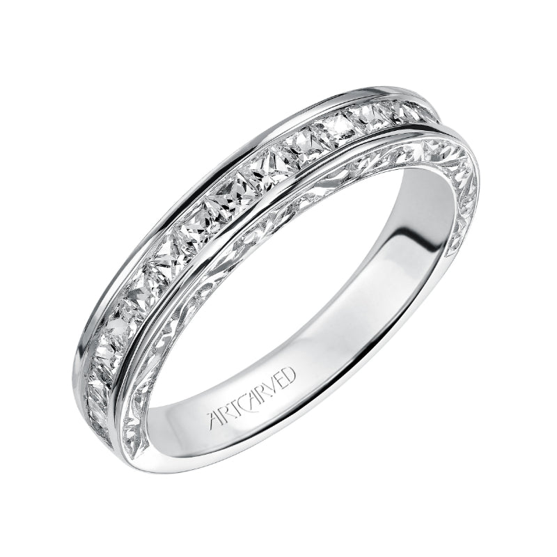 Artcarved Bridal Mounted with Side Stones Vintage Fashion Diamond Anniversary Band 14K White Gold - 33-V9120W-L.00