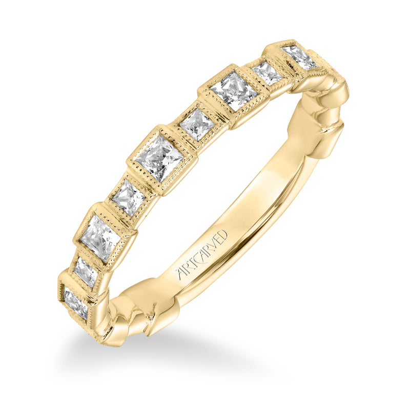 Artcarved Bridal Mounted with Side Stones Vintage Fashion Diamond Anniversary Band 14K Yellow Gold - 33-V9151Y-L.00