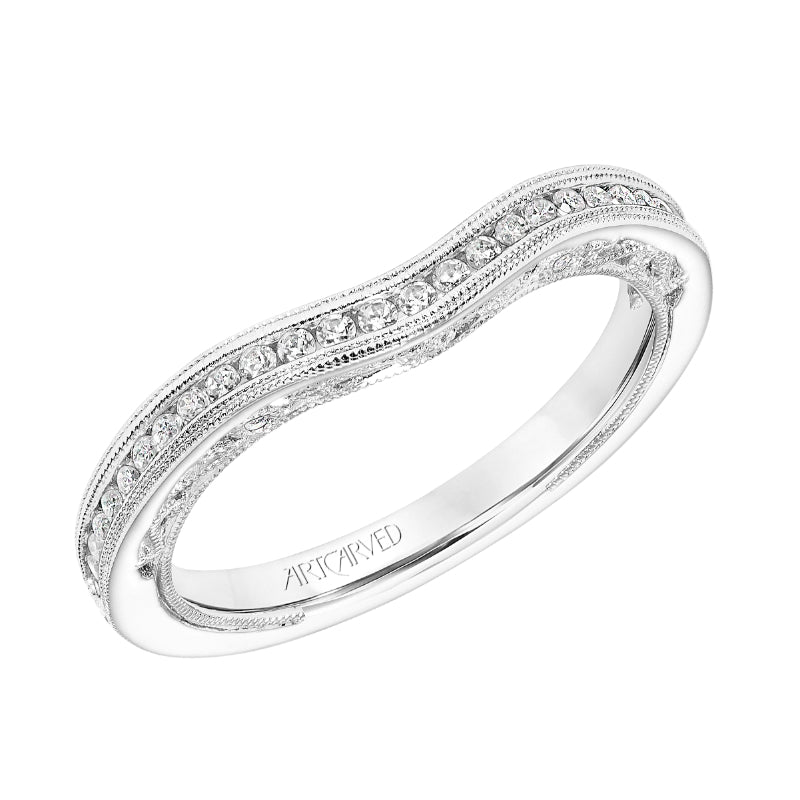 Artcarved Bridal Mounted with Side Stones Vintage Filigree Halo Diamond Wedding Band Liviana 18K White Gold - 31-V797W-L.01