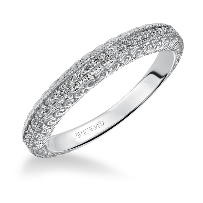 Artcarved Bridal Mounted with Side Stones Vintage Filigree Halo Diamond Wedding Band Roseanne 14K White Gold - 31-V530W-L.00