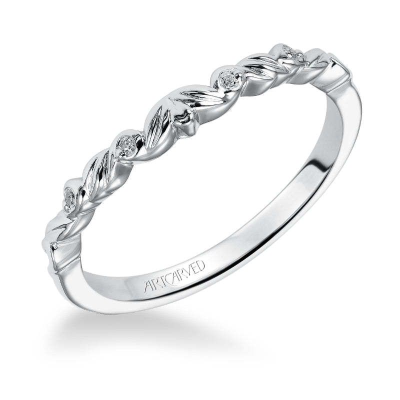 Artcarved Bridal Mounted with Side Stones Vintage Filigree Halo Diamond Wedding Band Yvette 14K White Gold - 31-V525W-L.00