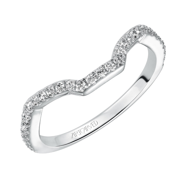 Wedding Band With Round Prong Set Diamonds And Curved Design To Fit Flush With Matching Engagement Ring.