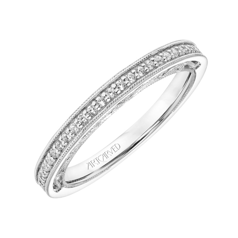 Artcarved Bridal Mounted with Side Stones Vintage Heritage Diamond Wedding Band Blanche 14K White Gold - 31-V760W-L.00