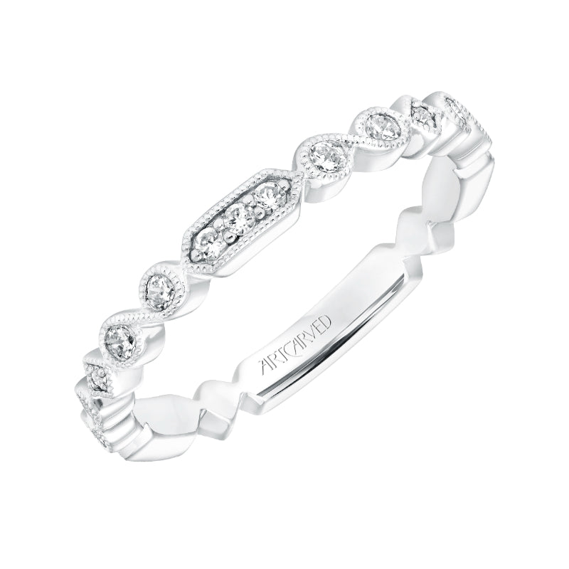 Artcarved Bridal Mounted with Side Stones Vintage Stackable Fashion Diamond Anniversary Band 14K White Gold - 33-V9184W-L.00