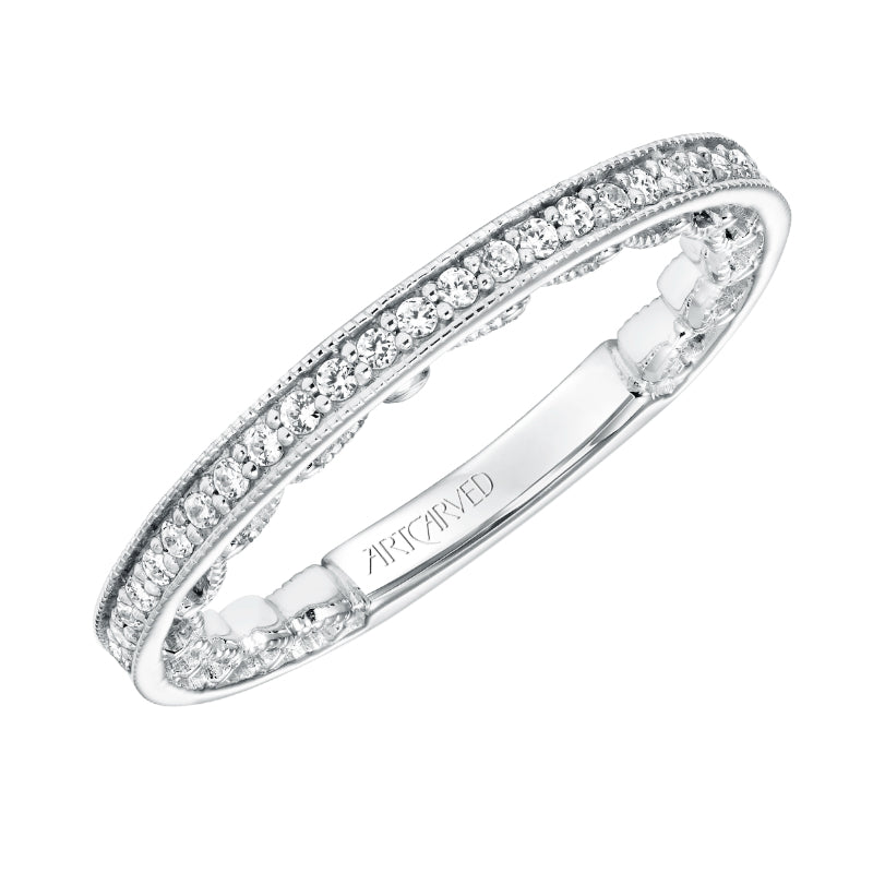 Artcarved Bridal Mounted with Side Stones Vintage Stackable Fashion Diamond Anniversary Band 14K White Gold - 33-V9191W-L.00