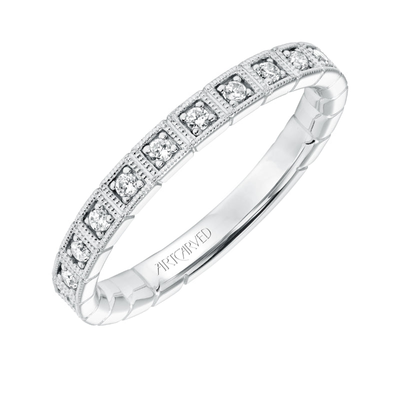 Artcarved Bridal Mounted with Side Stones Vintage Stackable Fashion Diamond Anniversary Band 14K White Gold - 33-V9202W-L.00