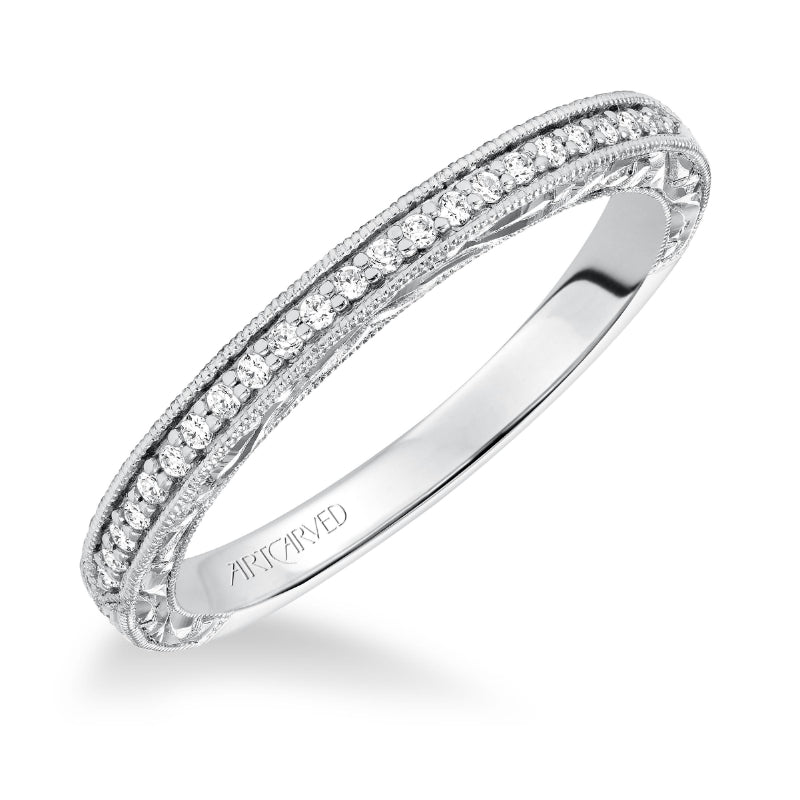 Artcarved Bridal Mounted with Side Stones Vintage Vintage Diamond Wedding Band Althea 14K White Gold - 31-V554W-L.00