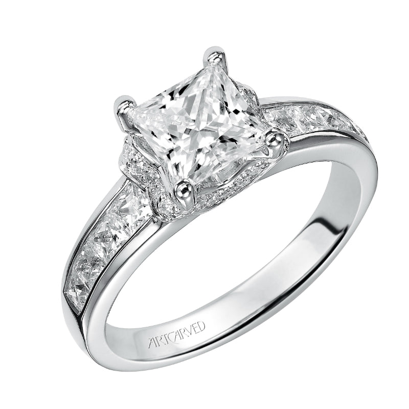 Artcarved Bridal Semi-Mounted with Side Stones Classic Engagement Ring Jillian 14K White Gold - 31-V411FCW-E.01