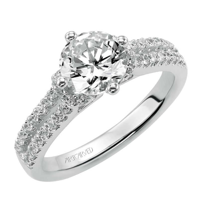 Artcarved Bridal Semi-Mounted with Side Stones Classic Engagement Ring Lynn 14K White Gold - 31-V393FRW-E.01