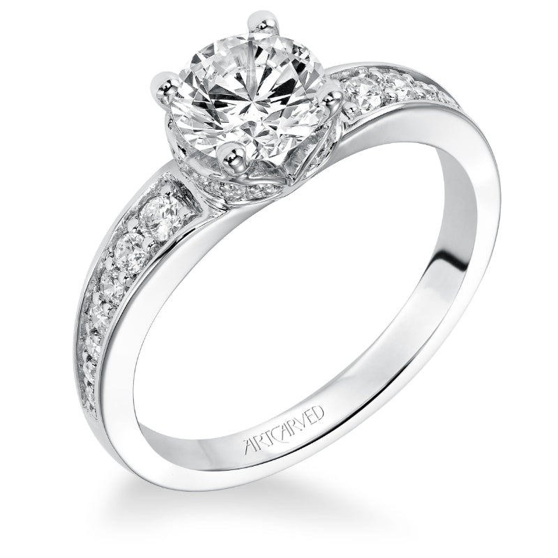Artcarved Bridal Semi-Mounted with Side Stones Classic Engagement Ring Norah 14K White Gold - 31-V363ERW-E.01