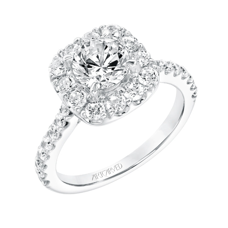 Artcarved Bridal Semi-Mounted with Side Stones Classic Halo Engagement Ring Frances 14K White Gold - 31-V734ERW-E.01