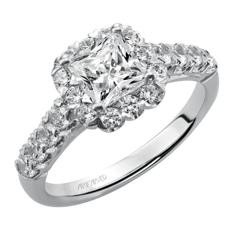 Artcarved Bridal Semi-Mounted with Side Stones Classic Halo Engagement Ring Jaime 14K White Gold - 31-V440ECW-E.01