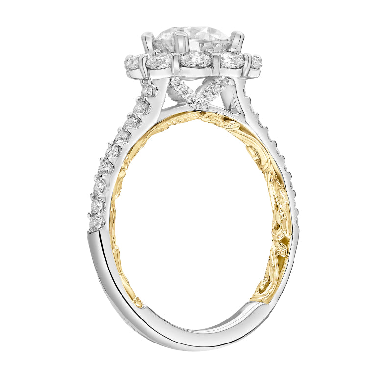 Artcarved Bridal Semi-Mounted with Side Stones Classic Lyric Engagement Ring Cici 18K White Gold Primary & 18K Yellow Gold - 31-V927ERWY-E.03