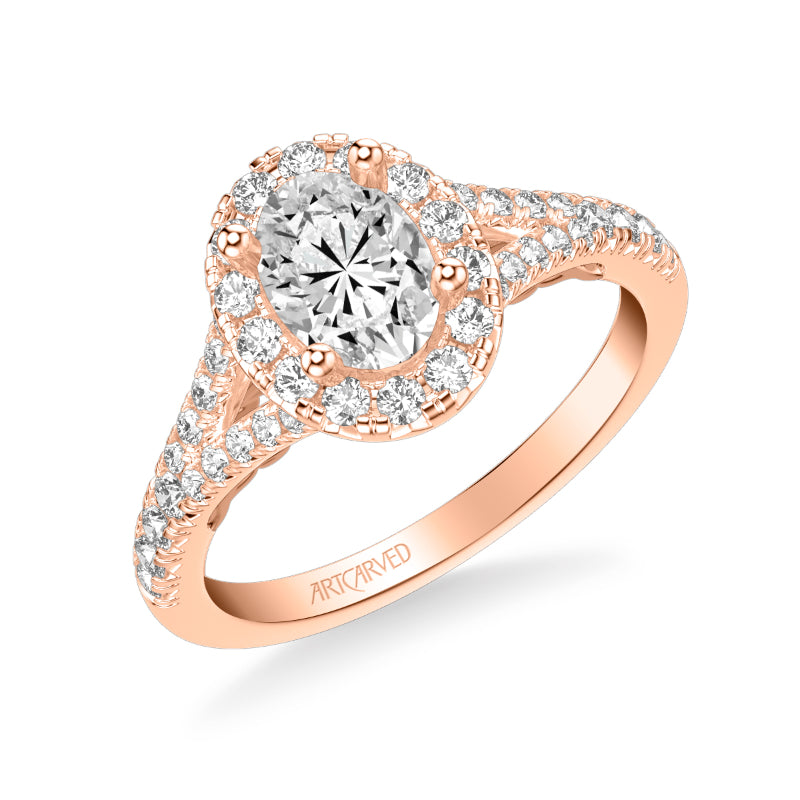 Artcarved Bridal Semi-Mounted with Side Stones Classic Lyric Halo Engagement Ring Augusta 14K Rose Gold - 31-V1003EVR-E.01