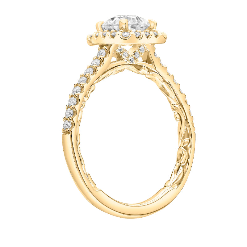 Artcarved Bridal Semi-Mounted with Side Stones Classic Lyric Halo Engagement Ring Mellie 14K Yellow Gold - 31-V934ERY-E.01