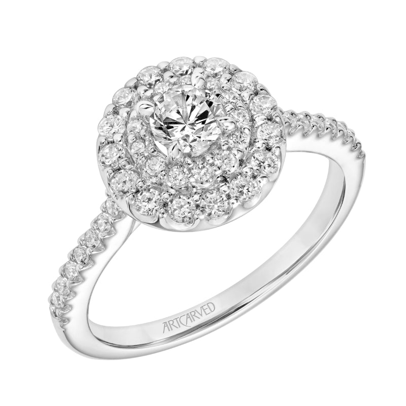 Artcarved Bridal Semi-Mounted with Side Stones Classic One Love Engagement Ring Athena 18K White Gold - 31-V882ARW-E.05