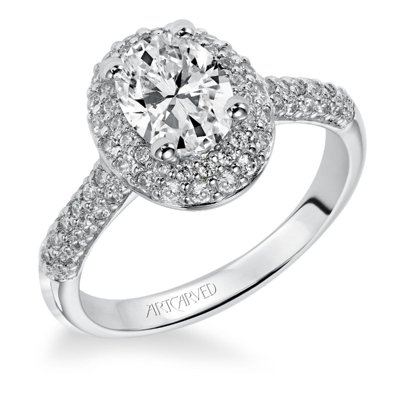 Artcarved Bridal Semi-Mounted with Side Stones Classic Pave Halo Engagement Ring Betsy 14K White Gold - 31-V378EVW-E.01