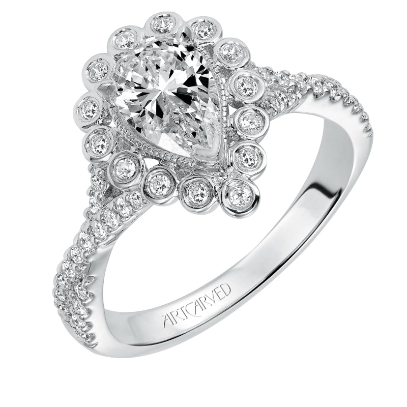 Artcarved Bridal Semi-Mounted with Side Stones Contemporary Bezel Halo Engagement Ring Genevieve 14K White Gold - 31-V562EPW-E.01
