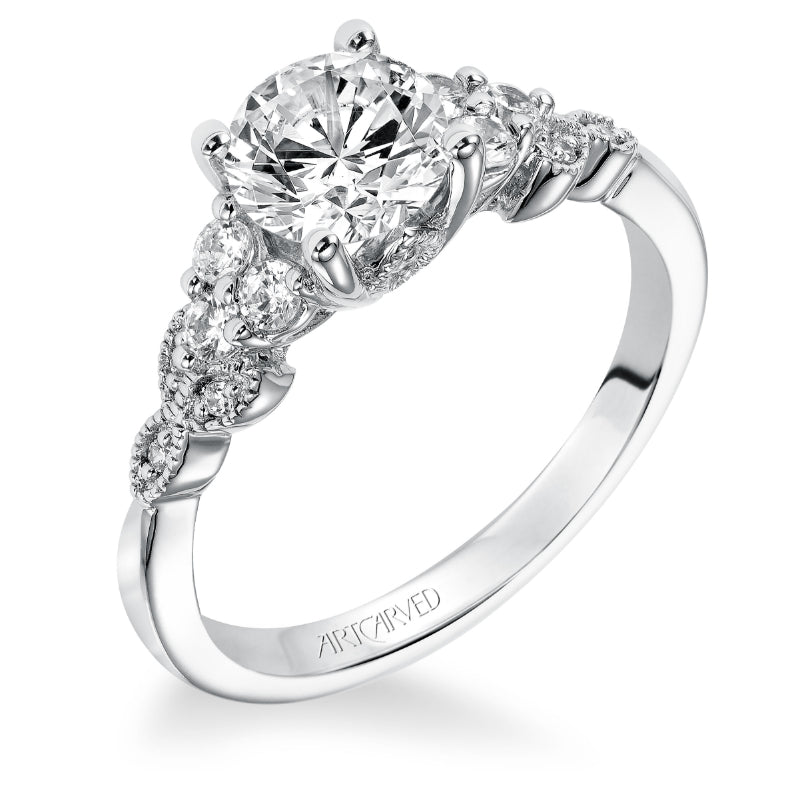 Artcarved Bridal Semi-Mounted with Side Stones Contemporary Diamond Engagement Ring Adeline 14K White Gold - 31-V309ERW-E.01