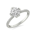 Contemporary Floral Diamond Engagement Ring With Blue Sapphire Accented Floral Basket