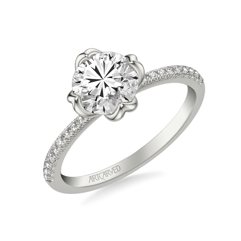 Artcarved Bridal Semi-Mounted with Side Stones Contemporary Engagement Ring 14K White Gold & Blue Sapphire - 31-V1037SGRW-E.01