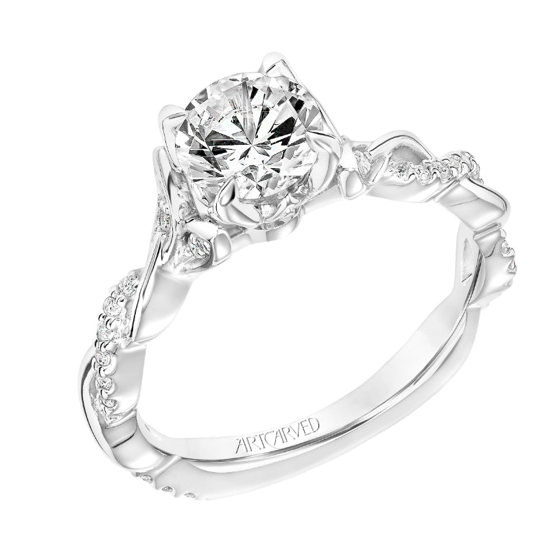 Artcarved Bridal Semi-Mounted with Side Stones Contemporary Floral Engagement Ring Amaryllis 14K White Gold - 31-V843ERW-E.01