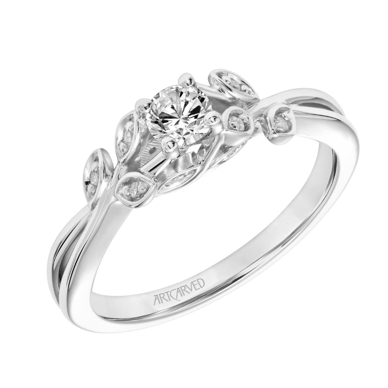 Artcarved Bridal Semi-Mounted with Side Stones Contemporary Floral Engagement Ring Corinne 14K White Gold - 31-V317XRW-E.04