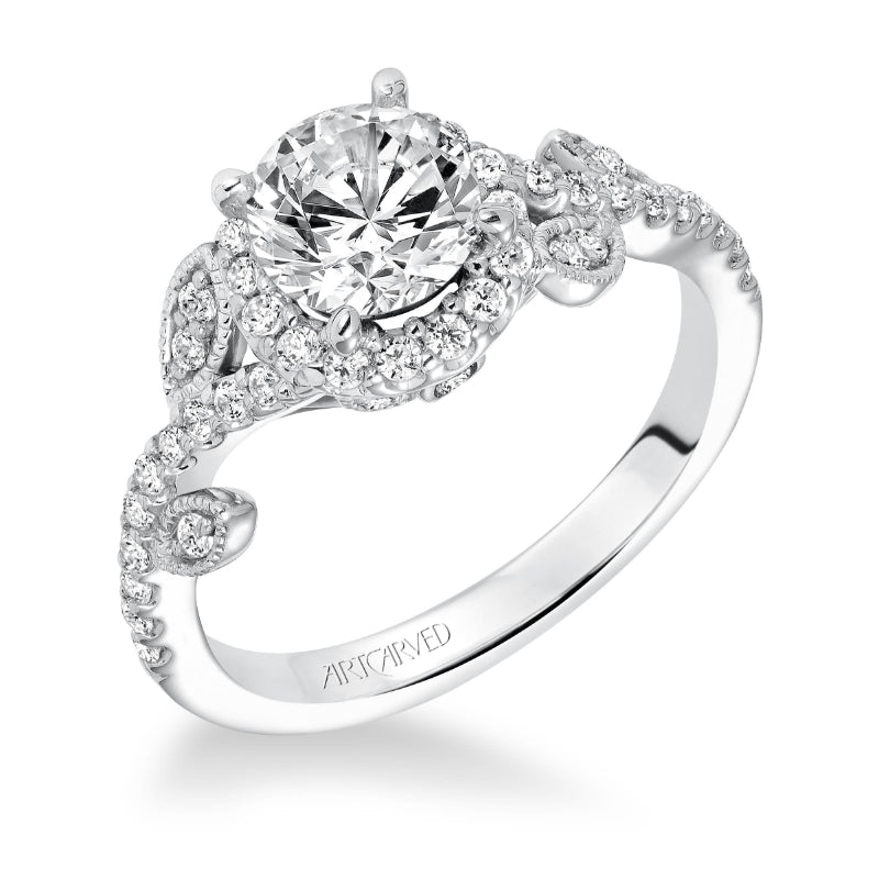 Artcarved Bridal Semi-Mounted with Side Stones Contemporary Floral Halo Engagement Ring Thalia 14K White Gold - 31-V600ERW-E.01