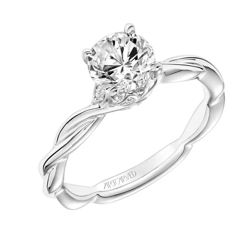 Artcarved Bridal Semi-Mounted with Side Stones Contemporary Floral Twist Engagement Ring Aster 18K White Gold - 31-V845ERW-E.03
