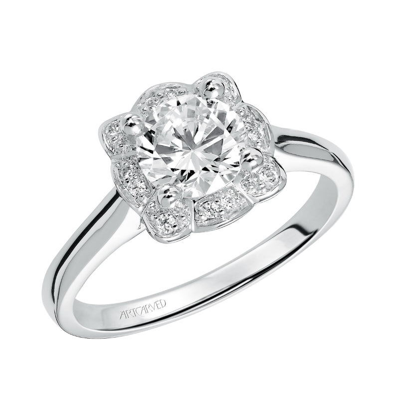 Artcarved Bridal Semi-Mounted with Side Stones Contemporary Halo Engagement Ring Marissa 14K White Gold - 31-V395ERW-E.01