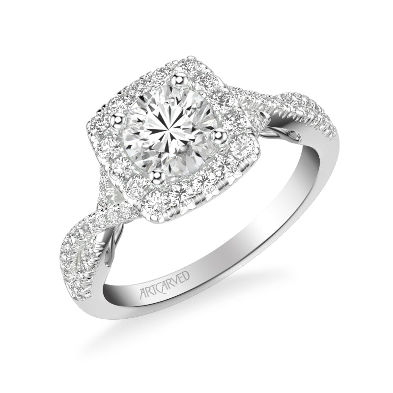Artcarved Bridal Semi-Mounted with Side Stones Contemporary Lyric Halo Engagement Ring Shelby 18K White Gold - 31-V1013ERW-E.03