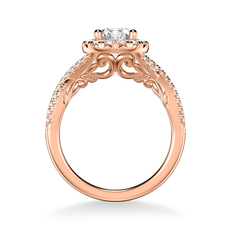 Artcarved Bridal Semi-Mounted with Side Stones Contemporary Lyric Halo Engagement Ring Vonda 14K Rose Gold - 31-V1014ERR-E.01