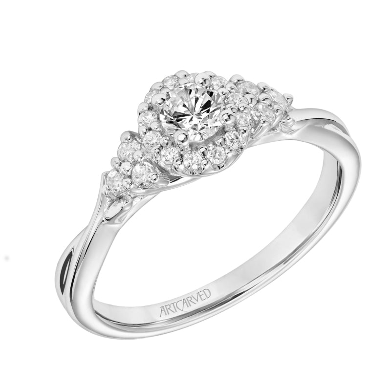 Artcarved Bridal Semi-Mounted with Side Stones Contemporary One Love Engagement Ring 14K White Gold - 31-V876XRW-E.04